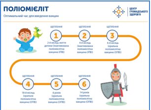 5 щеплення - 6 років (оральна поліомієлітна вакцина (ОПВ));6 щеплення - 14 років (оральна поліомієлітна вакцина (ОПВ)).
